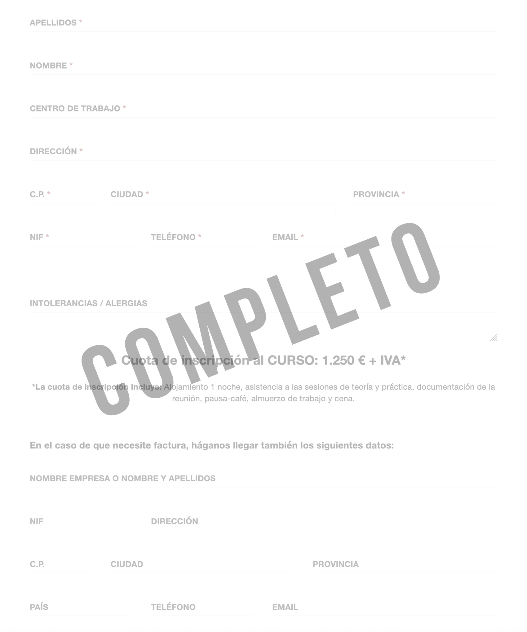 Toda inscripción debe formalizarse por escrito a la Secretaría Técnica adjuntando el formulario de inscripción y el comprobante del pago. Del mismo modo, será confirmada por escrito al remitente una vez recibido dicho pago.