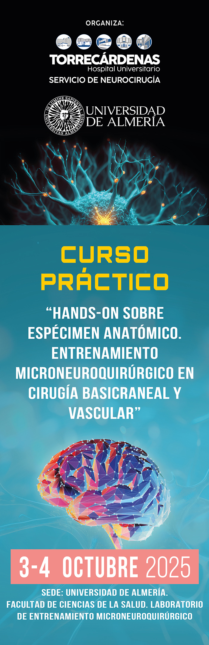 Los datos personales que usted nos proporcione serán tratados conforme a lo establecido en la RGPD 679/2016, y en concreto, serán utilizados por la Secretaría del Encuentro de Neurocirugía de Almería, con la única finalidad de gestionar la inscripción y reservas en el Encuentro de Neurocirugía de Almería.